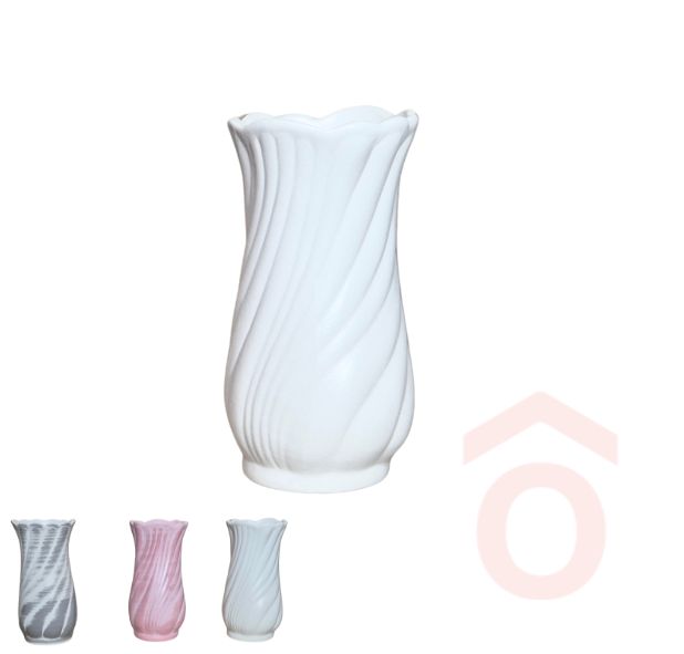 Elegáns, kézzel formázott kerámia váza finom hullámos mintázattal és hullámosra formázott peremmel. Kapható három dekoratív színben (fehér, rózsaszín, szürke), a választék a raktárkészlettől függően változhat.