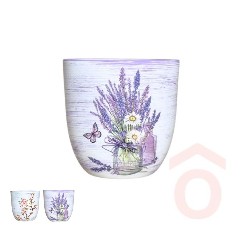 Egyedi, kézzel készült kerámia kaspó finom decoupage technikával felvitt virágmotívummal. Letisztult, fehér felületén két különböző mintából választhatsz a raktárkészlettől függően.