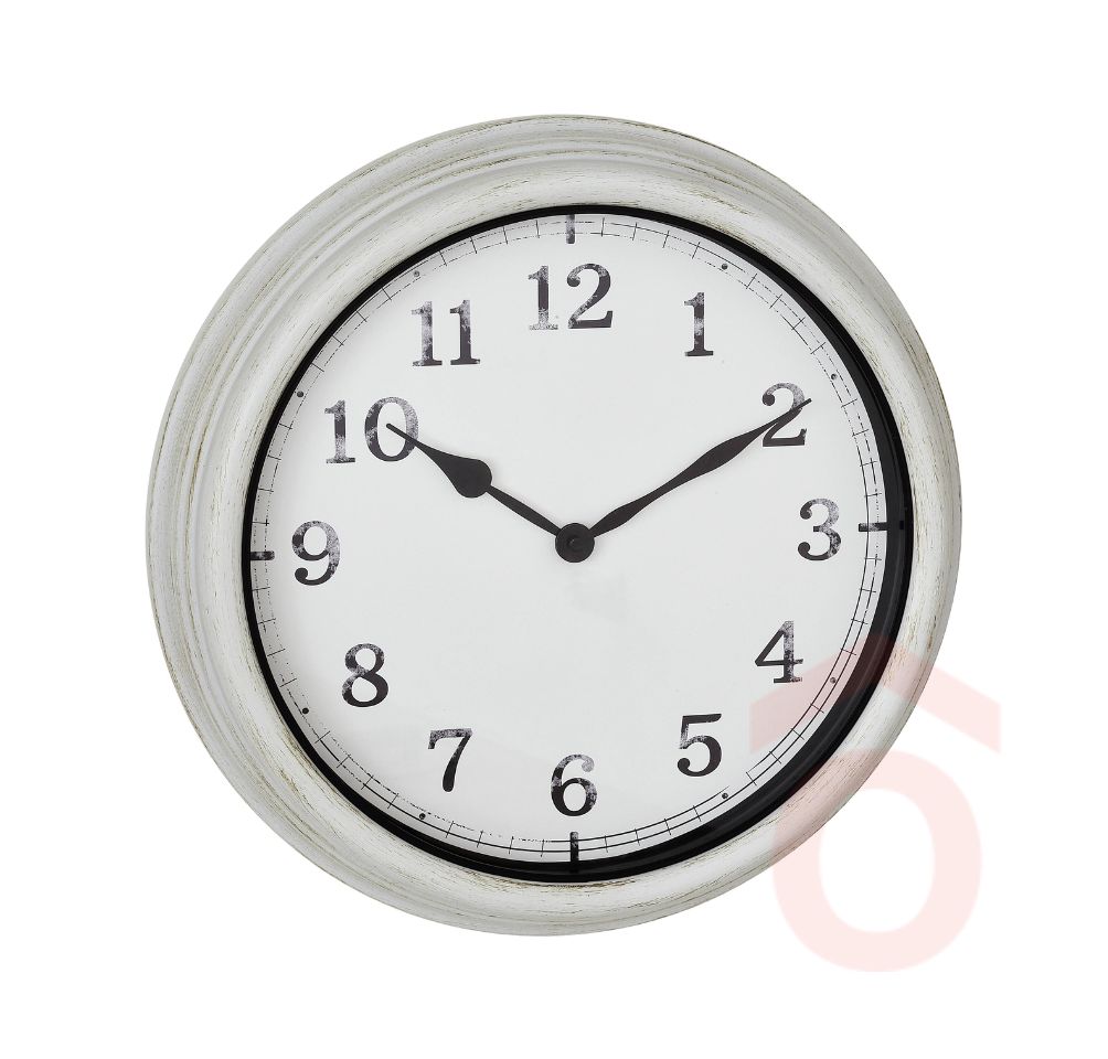 Az óra fehér színű, masszív kialakítású, és kvarc meghajtású, amely pontos időmérést biztosít. Mérete 380 mm átmérő és 63 mm vastagság.