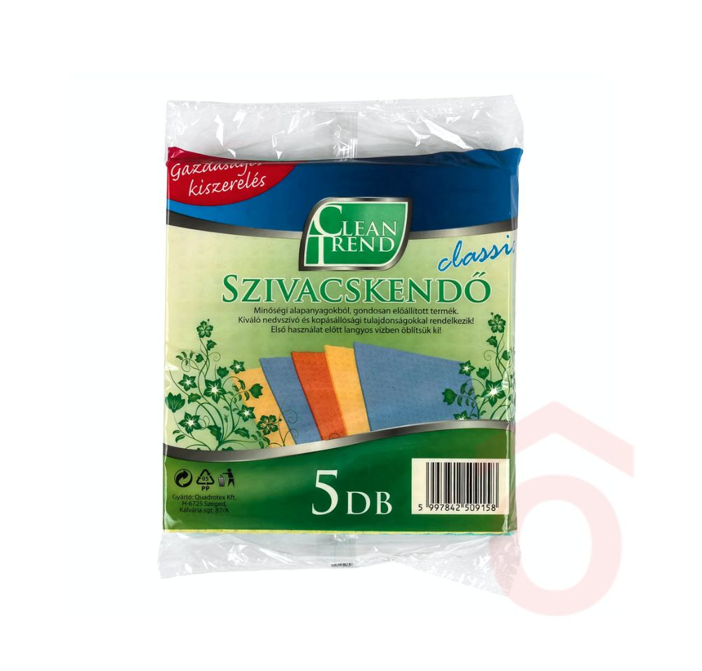 A Clean Trend szivacskendő rendkívül magas nedvszívó képességgel és tartóssággal rendelkezik, így ideális választás a háztartás bármely területére. A kendő a felszívott nedvességet hatékonyan magában tartja, így nyom- és csíkmentesen töröl. A speciális műanyag térhálós erősítés hosszú élettartamot biztosít, ráadásul mosogatógépben is tisztítható, így újra és újra használható.