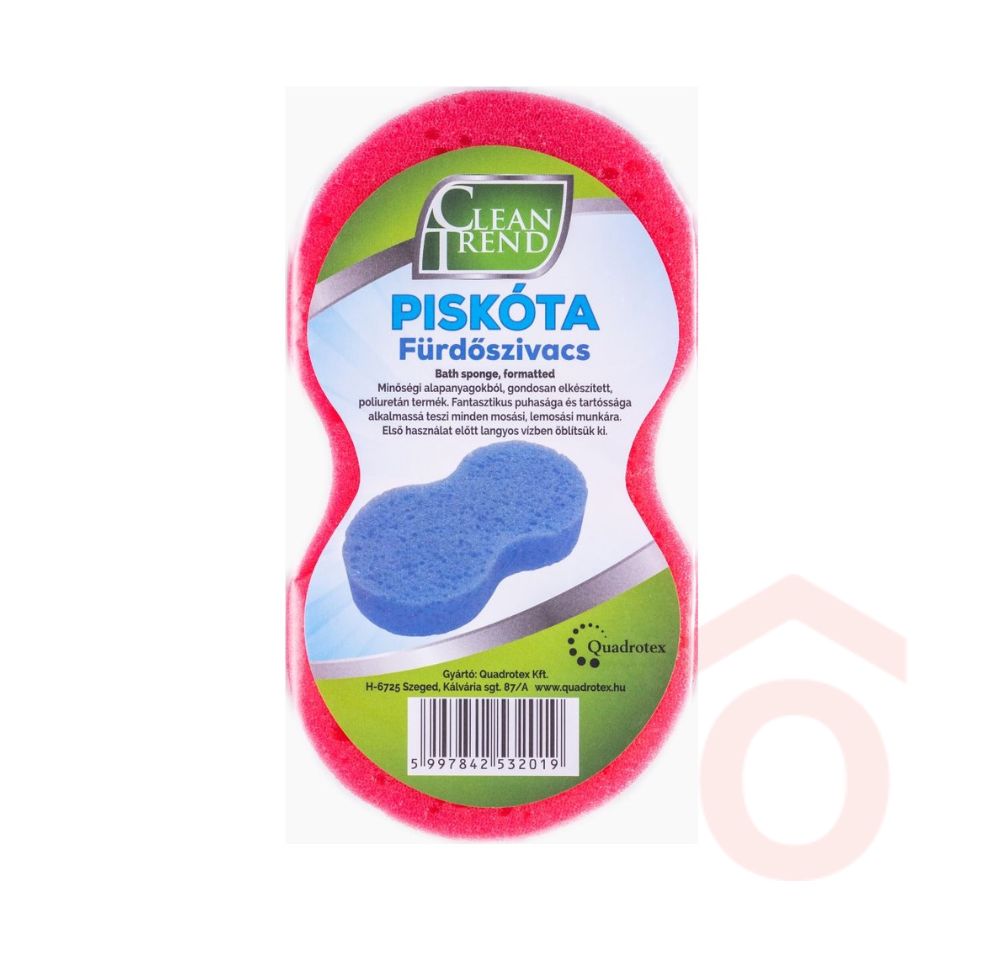 A Clean Trend „Piskóta” fürdőszivacs extra nagy méretével és ergonomikus kialakításával ideális választás a mindennapi higénikus tisztálkodáshoz. Puha, kellemes tapintású anyagának köszönhetően kíméletes a bőrhöz, miközben alapos tisztítást biztosít. Több színben elérhető.
