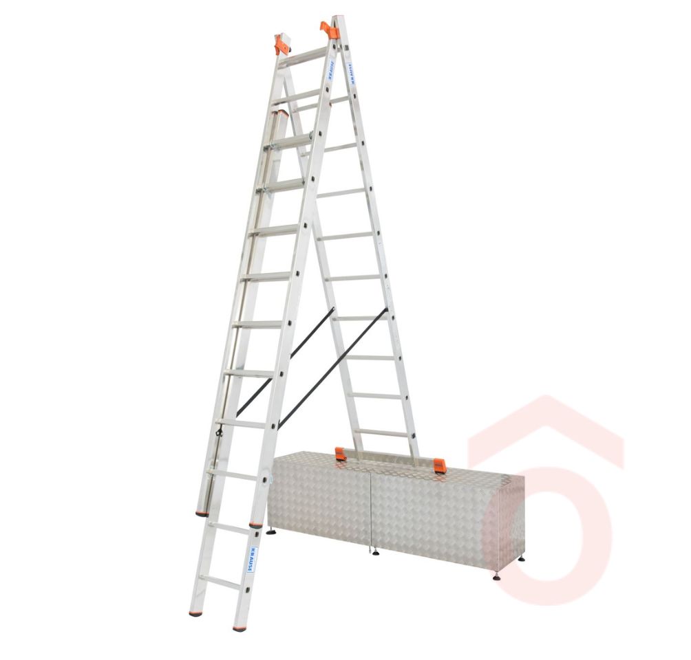 Professzionális használatra tervezett alumínium sokcélú létra, amely támasztólétraként, állólétraként és tolólétraként egyaránt alkalmazható. A kitolható szakasz rugalmas munkavégzést tesz lehetővé, így lépcsőknél és sarkoknál is praktikus megoldás.