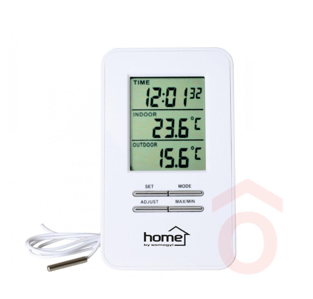 A HOME HC 12 digitális hőmérő ideális megoldás, ha pontos adatokat szeretne kapni otthona benti és külső hőmérsékletéről, miközben praktikus óraként is szolgál. A 12/24 órás időkijelzés és a maximális/minimális hőmérsékleti adatok segítségével teljes képet kaphat környezete klímaviszonyairól.