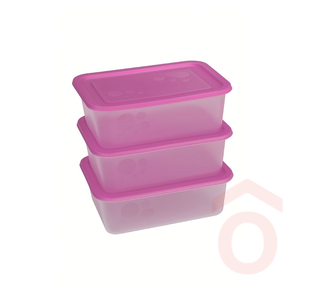 A szett 3 darab dobozt tartalmaz, így egyszerre többféle étel vagy alapanyag tárolása is megoldható. A kompakt, szögletes forma segíti a helytakarékos tárolást, a zárható fedél pedig megőrzi az ételek frissességét és aromáját.