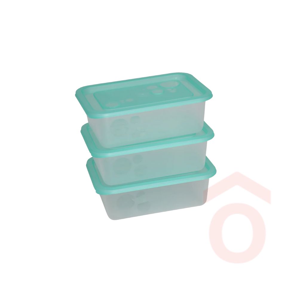 A szett 3 darab dobozt tartalmaz, így egyszerre többféle étel vagy alapanyag tárolása is megoldható. A kompakt, szögletes forma segíti a helytakarékos tárolást, a zárható fedél pedig megőrzi az ételek frissességét és aromáját.