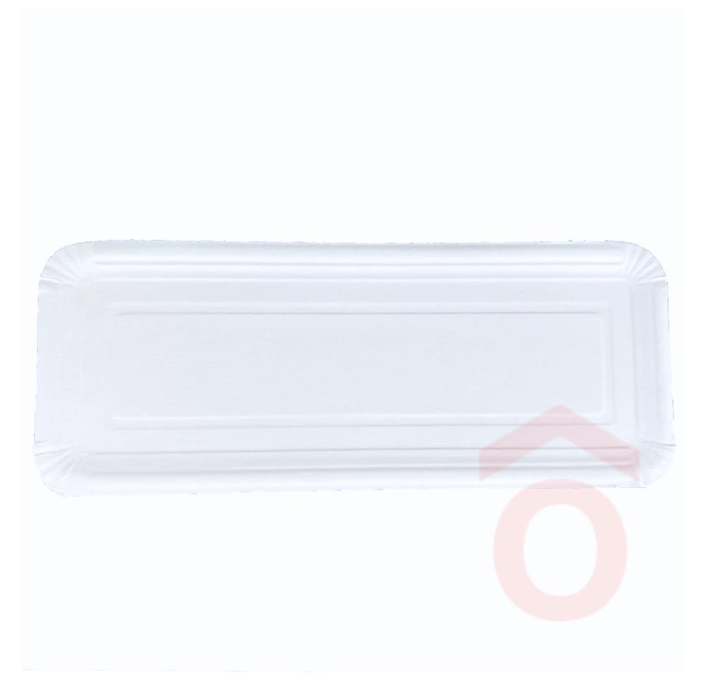 Hosszúkás kialakítású, eldobható papírtálca halételek, például sült hal, fish & chips vagy tengeri fogások tálalására. Fehér, letisztult megjelenése tökéletes választás éttermekbe, büfékbe, rendezvényekre.