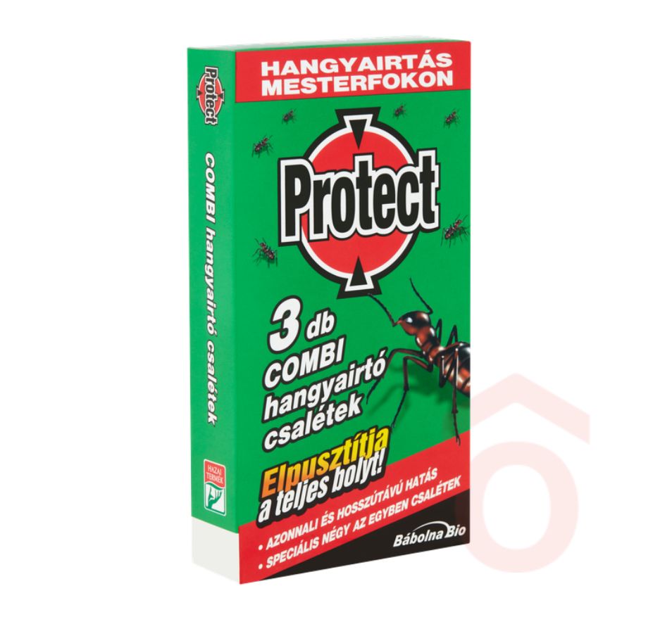 A Protect hangyaírtó csalétek azonnali és tartós hatást biztosít a háztartásban megjelenő hangyák ellen. A csalétek keserű ízű, vonzó és tápanyagtartalmú keveréket tartalmaz, amelyet a hangyák előszeretettel fogyasztanak, így hatékonyan pusztítja el a bolyt is. Egyszerűen kihelyezhető, nem kell szétporlasztani vagy permetezni. Ideális beltéri használatra, lakásban, konyhában, pincében vagy teraszon.