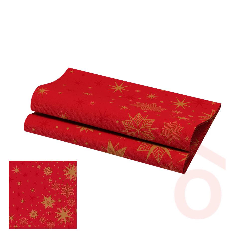 Nagyvonalú 40 × 40 cm-es méret és textilhatású puhaság egy csomagban: a Bio Dunisoft® szalvéta elegáns megjelenést, valamint megbízható higiéniát és praktikusságot biztosít. A Stargazing Red szín hangulatos, színes élményt ad a terítéknek, legyen szó reggeliről, ebédről vagy könnyed vacsoráról.