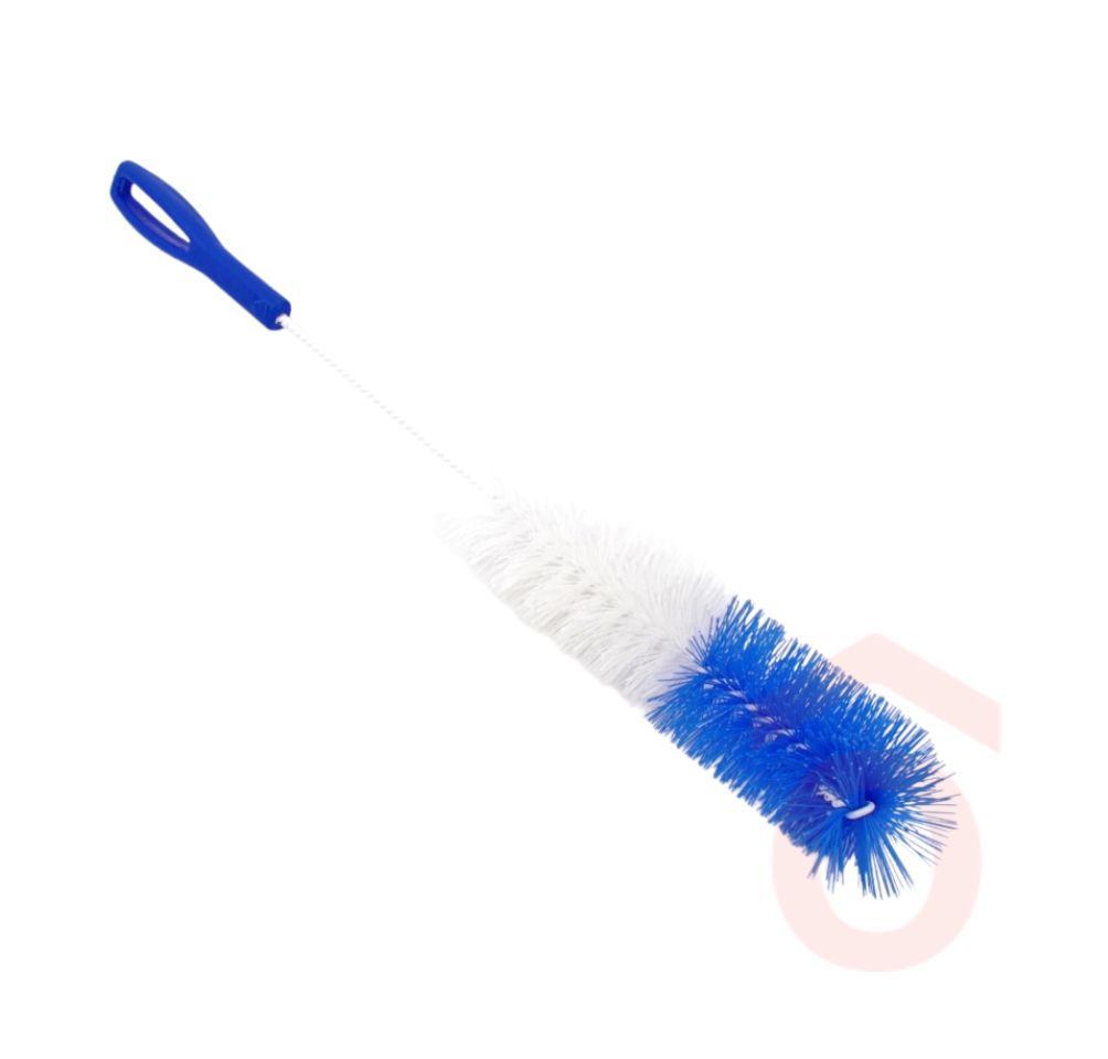 Praktikus üvegmosó kefe kétszínű sörtékkel, amely ideális palackok, üvegek és vázák alapos belső tisztításához. Segít eltávolítani a nehezen elérhető szennyeződéseket és lerakódásokat is.