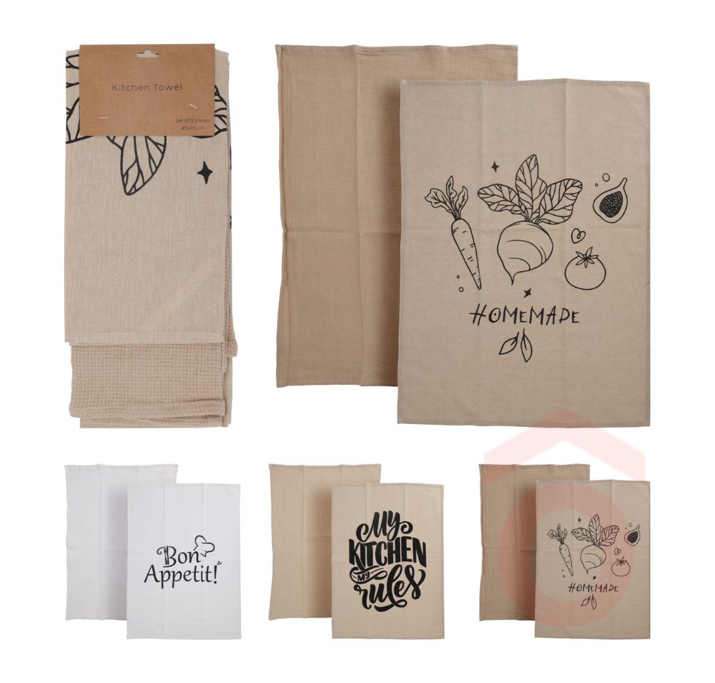 Ez a kiváló minőségű pamut konyharuha szett praktikus és stílusos választás minden konyhába. A csomag két különböző mintájú vagy feliratú konyharuhát tartalmaz, amelyek nemcsak dekoratívak, de megbízhatóan segítenek a mindennapi konyhai feladatokban. A 45x70 cm-es méretnek köszönhetően elegendő felületet biztosítanak a kéztörléshez, edényszárításhoz vagy a konyhapult gyors áttörléséhez.