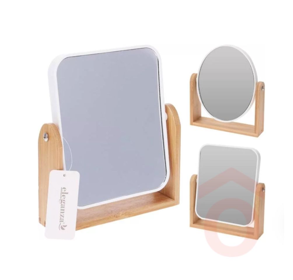Modern megjelenésével és praktikus kialakításával ez a bambusz és fehér mûanyag kombinációjából készült sminktükör stílusos kiegészítése lehet bármely fürdőszobának vagy öltözőasztalnak. Egyik oldala nagyítós, így precíz sminkelésre is ideális.