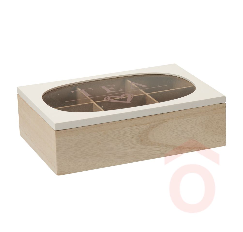 Ez a 6 rekeszes teadoboz elegáns, natúr fa kialakítással és különleges ovális üveg fedőlappal rendelkezik, amely stílusossá és egyedivé teszi a teafilterek tárolását. A felső átlátszó rész jól láthatóvá teszi a tartalmat, miközben harmonikusan illeszkedik a modern és klasszikus konyhákhoz is.
