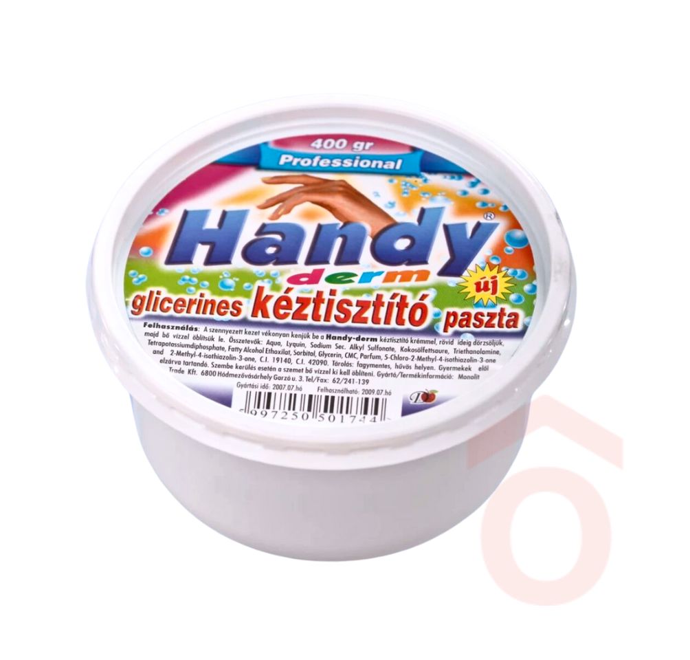 A Handy Derm glicerines kéztisztító paszta kifejezetten a zsíros, olajos és erősen szennyezett kéz hatékony tisztítására lett kifejlesztve. Speciális összetétele gyorsan fellazítja a makacs szennyeződéseket, miközben a glicerin segít megőrizni a bőr puhaságát és hidratáltságát.
