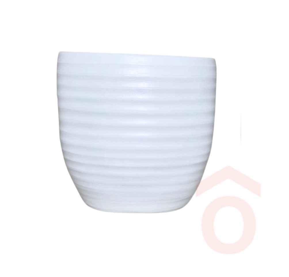 A bordás, tapintható felület dekoratív hatást ad, miközben a kerámia anyag stabilitást és tartósságot biztosít a mindennapi használatban. Ideális választás kisebb vagy közepes szobanövényekhez, ha egy igényes, visszafogott kaspót keresel, amely nem vonja el a figyelmet a növényről, inkább kiemeli azt.