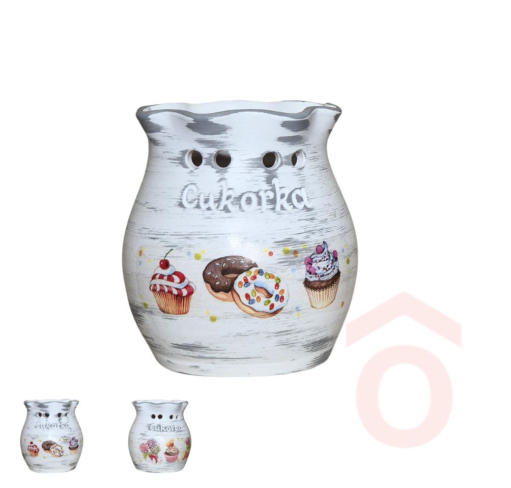 A kerámia cukorkatartó praktikus és dekoratív kiegészítő a konyhába vagy az étkezőtérbe. Ideális megoldás cukorkák, apró nassolnivalók vagy kisebb édességek esztétikus tárolására, hogy mindig kéznél legyenek vendégváráshoz vagy mindennapi használatra.