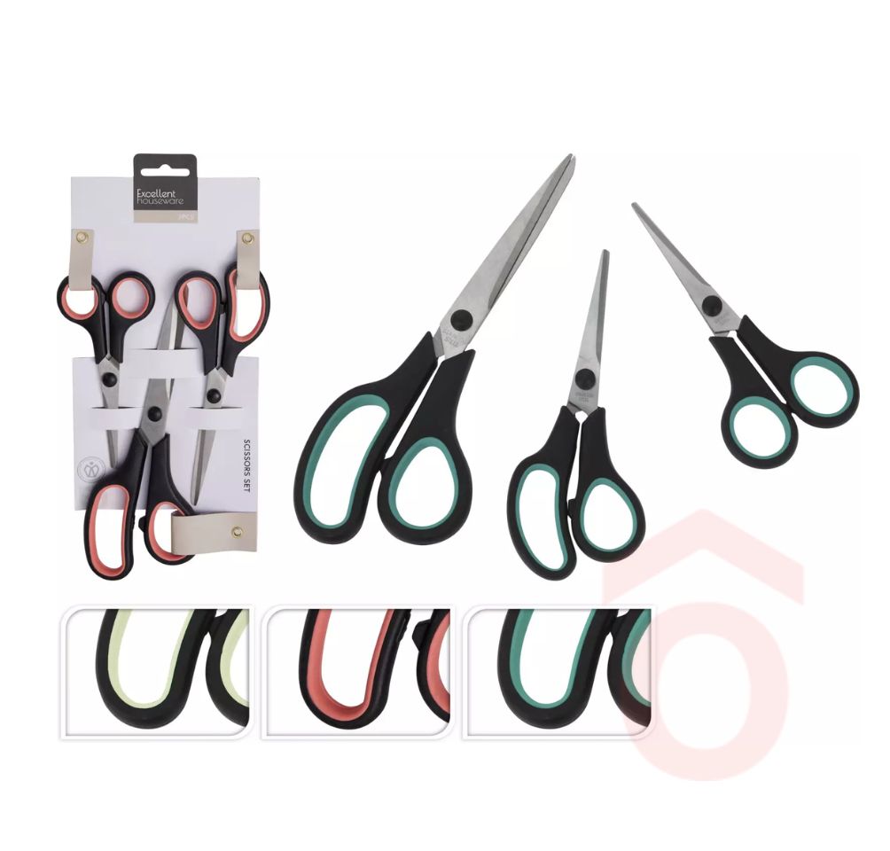 A szett tartalmaz egy finom munkákhoz ideális hímzőollót, egy konyhai ollót az ételkészítéshez, valamint egy univerzális ollót, amely a legtöbb háztartási feladatra alkalmas. Ergonomikus markolatuk kényelmes fogást biztosít, így hosszabb használat során is komfortos marad.