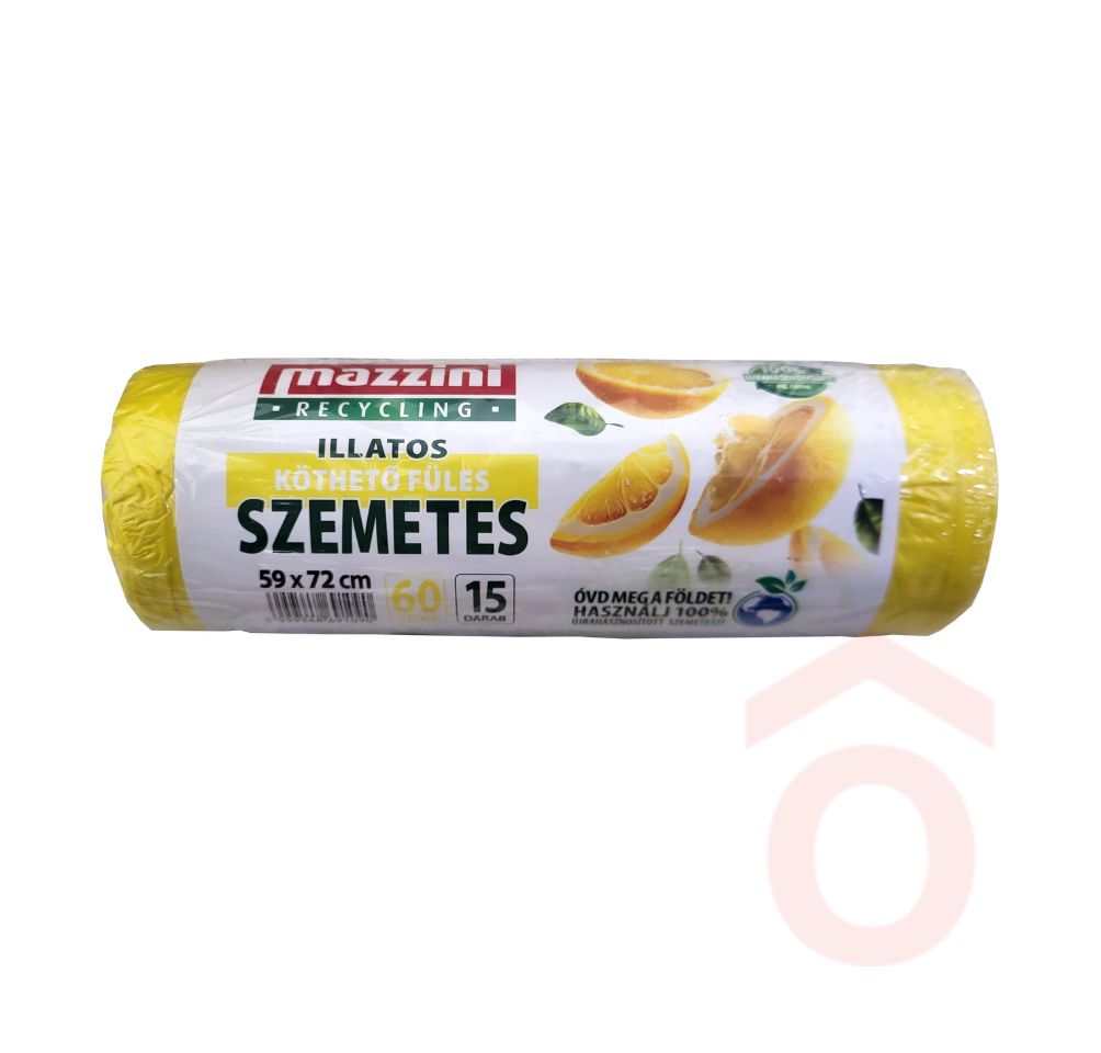 A Mazzini újrahasznosított illatos köthető füles szemeteszsák ideális választás háztartási és konyhai hulladék gyűjtéséhez és tárolásához. A 35 és 60 literes változatok 100%-ban szelektív hulladékgyűjtésből származó PE fóliából készülnek, így a termék a mindennapi használatban környezettudatos megoldást nyújt. Az újrahasznosítással hozzájárulsz a műanyag hulladék hatékonyabb felhasználásához és a felesleges új műanyag előállításának csökkentéséhez.
