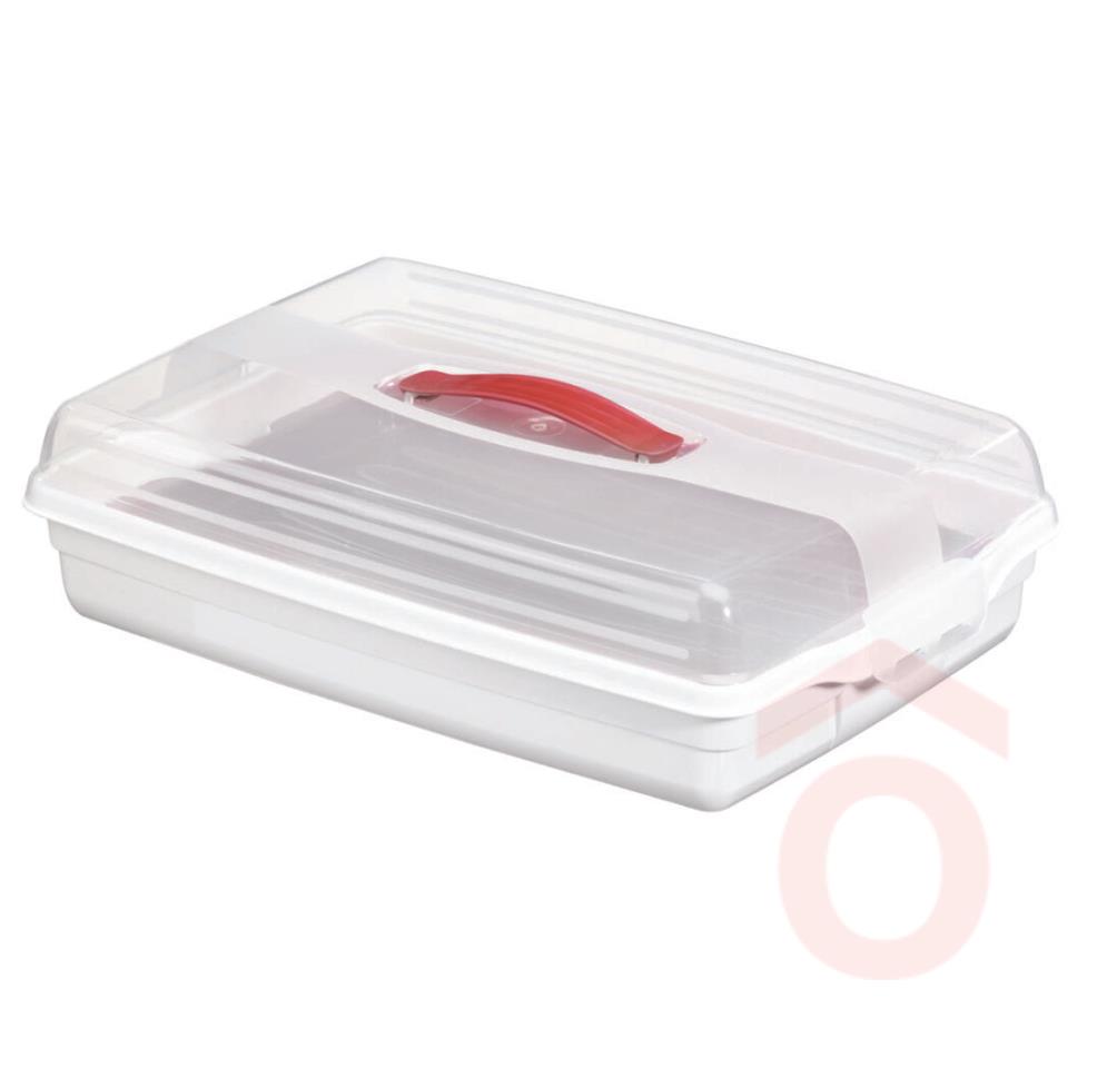 Levehető tetőrésszel, biztonságos záródással és kényelmes fogantyúval rendelkezik. Használható önálló süteményes tálcaként is, így otthon és útközben is megkönnyíti a sütemények kínálását.