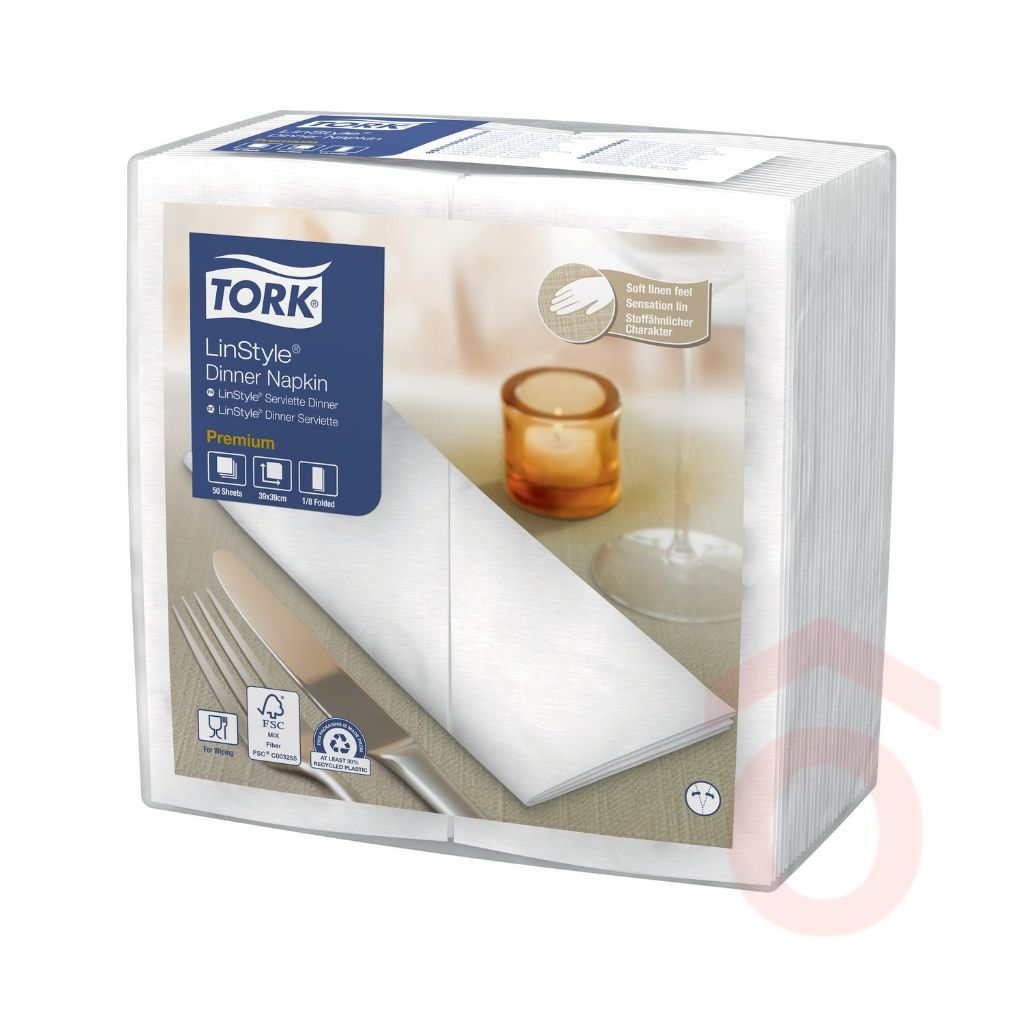 A Tork LinStyle® Dinner szalvéta prémium megoldás vendéglátóhelyek számára, ahol fontos a minőségi megjelenés és a kellemes vendégélmény. Textilhatású és textilérzetű kivitele tartós, puha tapintású, így az étkezés teljes ideje alatt megbízhatóan használható, miközben elegáns benyomást kelt az asztalon.