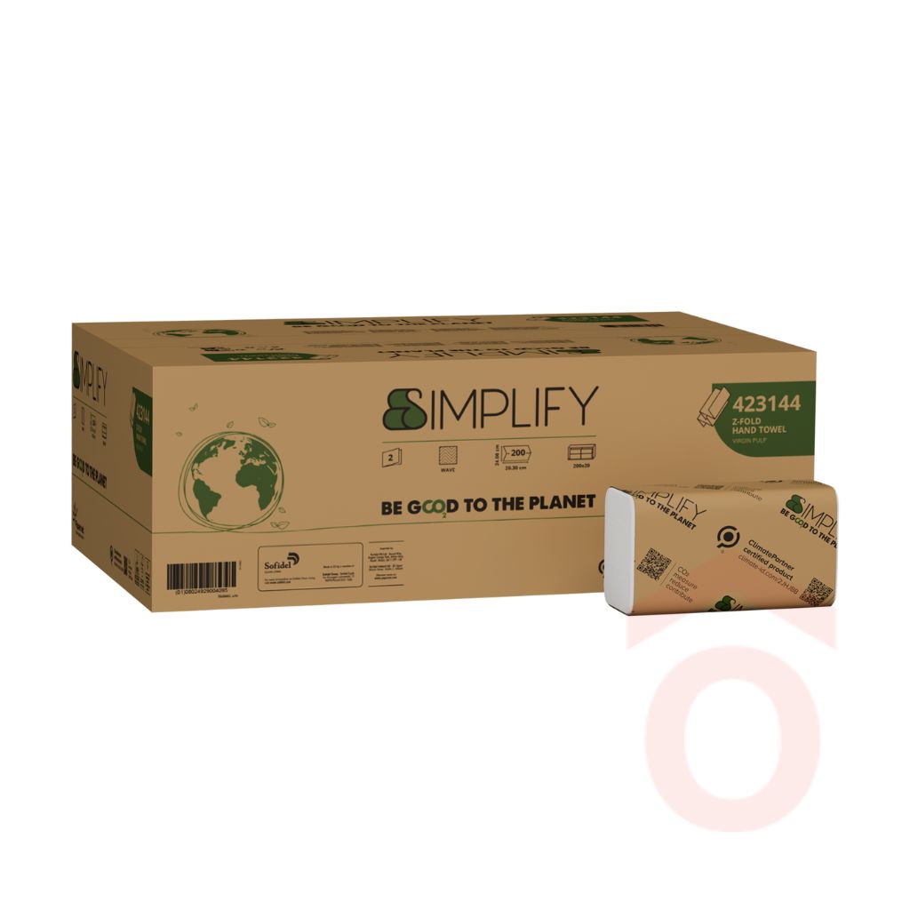 A Simplify termékcsalád Z-hajtogatott kéztörlői hatékony kézszárítást biztosítanak pazarlás nélkül, így ideális választást jelentenek olyan helyszínekre, ahol a napi forgalom közepes vagy magas. A Z-hajtogatás adagolóból történő használata segít a kontrollált felhasználásban, így kevesebb felesleges lap fogy, miközben a mosdó higiénikus és rendezett marad.