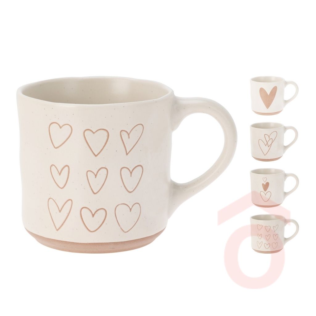 A kő bögre 350 ml űrtartalommal bájos és stílusos választás a mindennapi italokhoz. A bézs alapszín és a finom szívecskés minta meleg, barátságos hangulatot kölcsönöz a bögrének, így ideális kávé, tea vagy forró csokoládé fogyasztásához. A dekoratív megjelenésnek köszönhetően nemcsak praktikus, hanem hangulatos kiegészítője is lehet a konyhának.