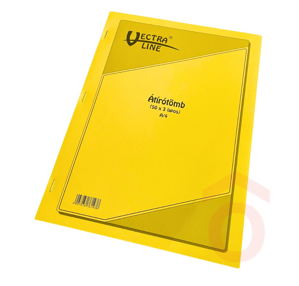Önátírós, 50 lapos, hárompéldányos, vegykezelt papírból készült önátíró tömb. Indigó használata nem szükséges. Első példány franciakockás, a másolatok sima lapon jelennek meg.