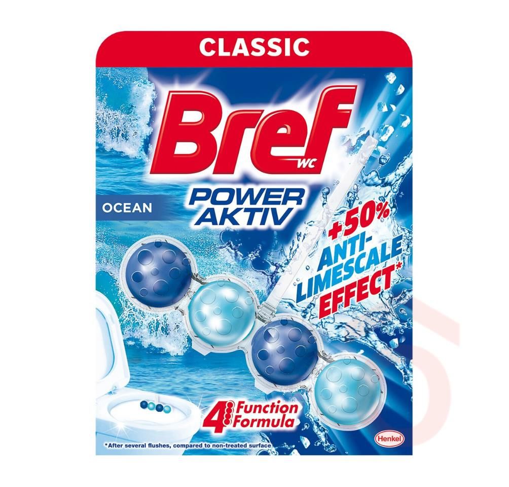 A Bref WC illatosító óceán illattal frissességet és higiénikus tisztaságot biztosít minden öblítés során. A továbbfejlesztett vízkő elleni formula segít megelőzni a lerakódásokat, miközben tisztítóhabja hatékonyan távolítja el a szennyeződéseket.