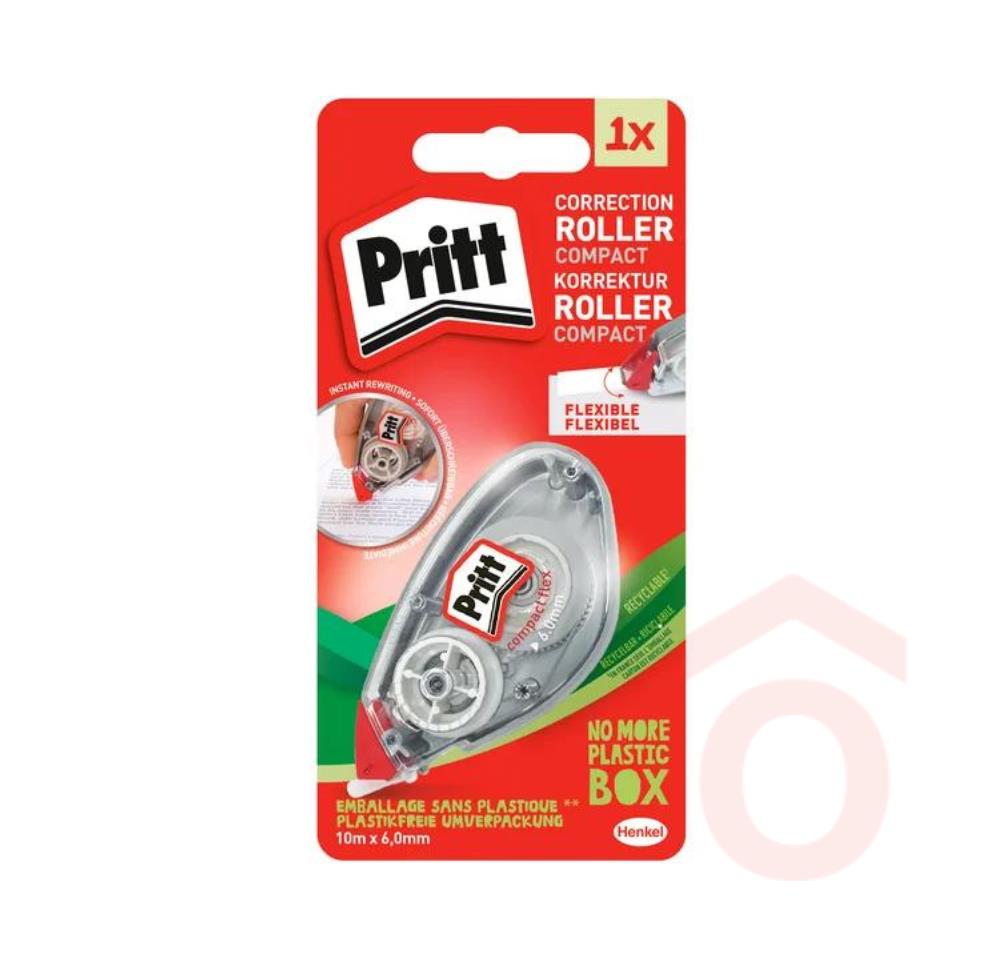A 6 mm szalagszélességű Pritt Compact Roller kényelmesebb kezelhetőséget biztosít a tökéletesített, formatervezett alakjának köszönhetően. Könnyed használata miatt különösen jó választás alkalmi felhasználóknak, akik gyorsan és egyszerűen szeretnék javítani a hibákat a mindennapi papírmunkában.