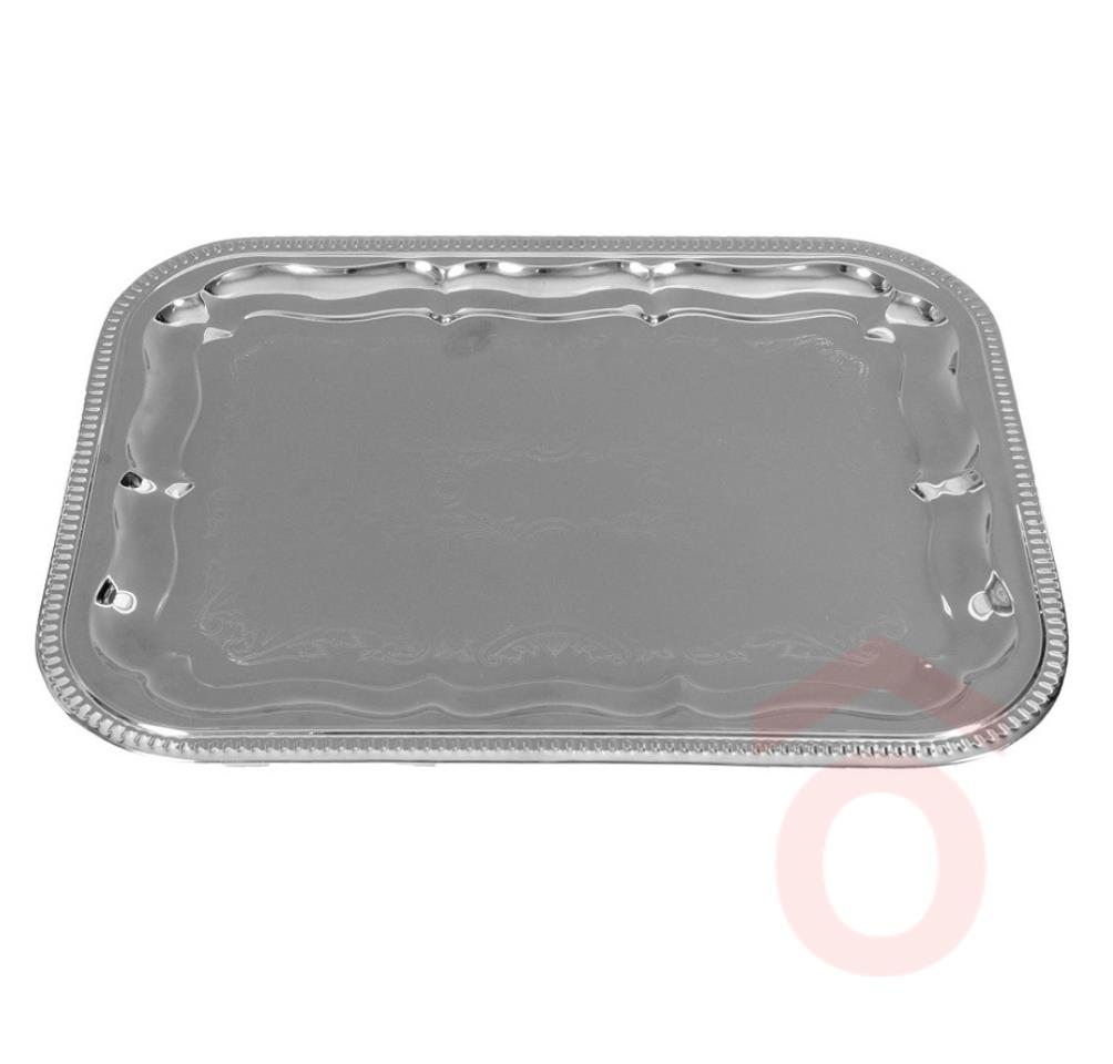 Krómozott szögletes alakú tálca. Karcmentes, folyékony mosogatószerrel tisztítható.