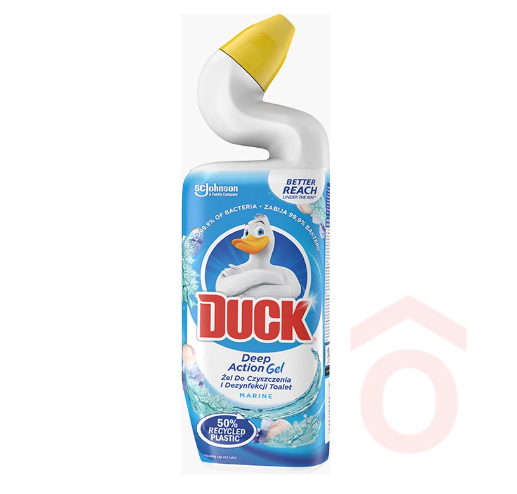 A Duck fertőtlenítő WC-tisztító gél marine (óceán) illattal hatékonyan pusztítja el a baktériumokat, miközben friss tengeri illatot biztosít. Sűrű gél formulája hosszabb ideig marad a felületen, így fokozott tisztító és fertőtlenítő hatást kínál.