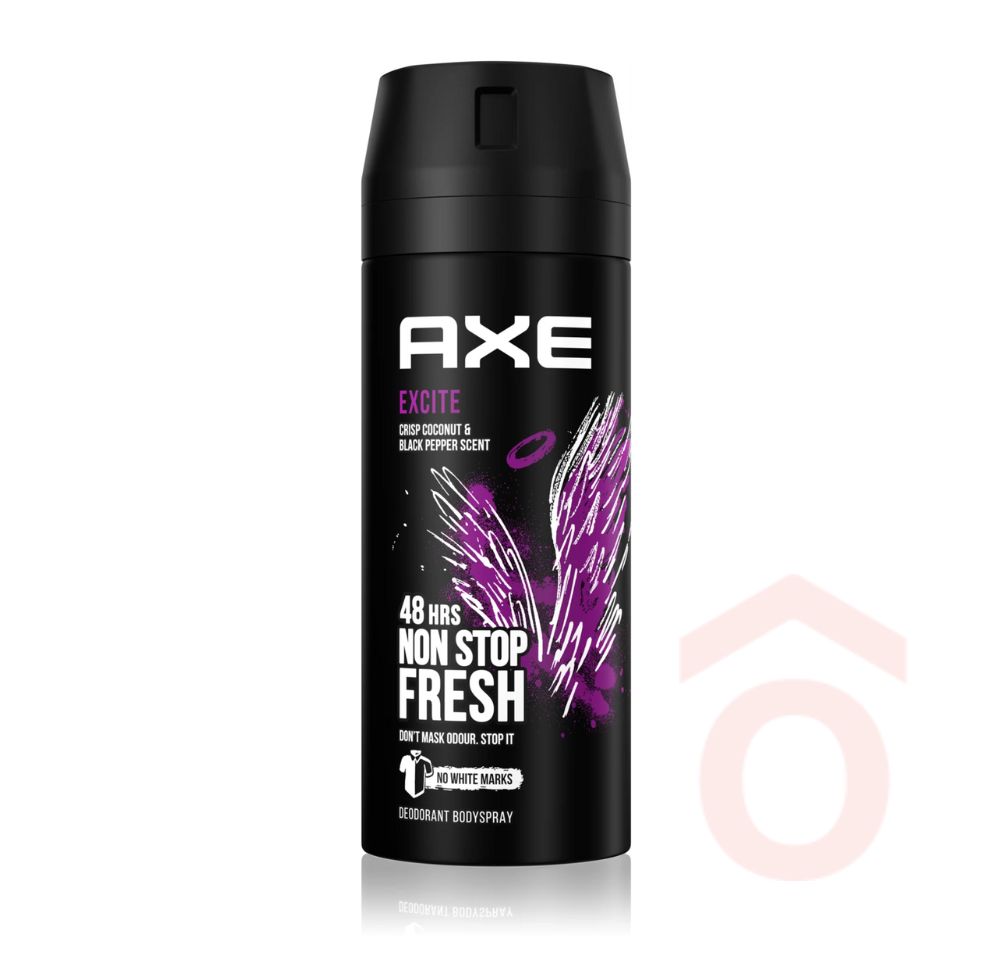 Az AXE Excite dezodor spray különleges, ropogós kókusz és fekete bors illatával hosszan tartó frissességet biztosít. Alumíniumsó-mentes formulája 48 órás védelmet nyújt a testszag ellen, miközben gyengéd a bőrhöz és nem hagy nyomot a ruhákon.