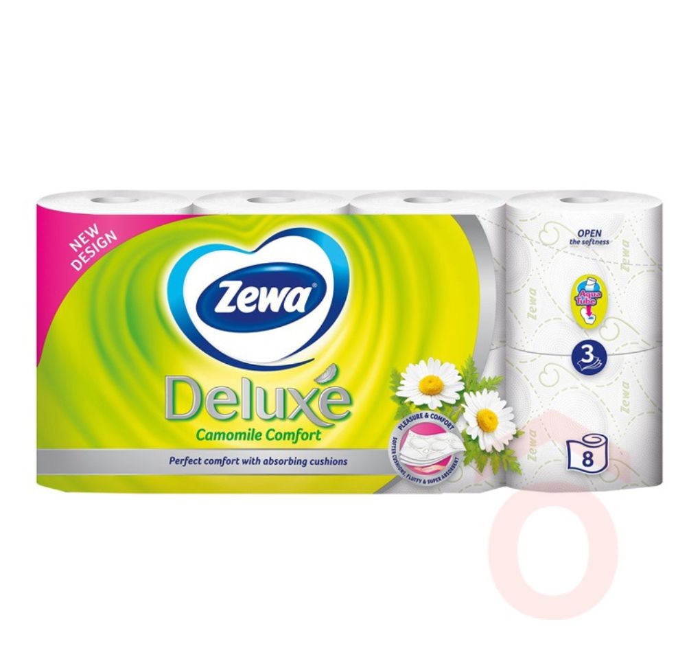 Üde zöld dombornyomású, 3 rétegű toalettpapír a kamilla kellemes illatával. A bőrgyógyászatilag tesztelt Zewa Deluxe toalettpapír-család termékeit úgy tervezték, hogy maximális komfortot és magas minőséget biztosítsanak számodra.
