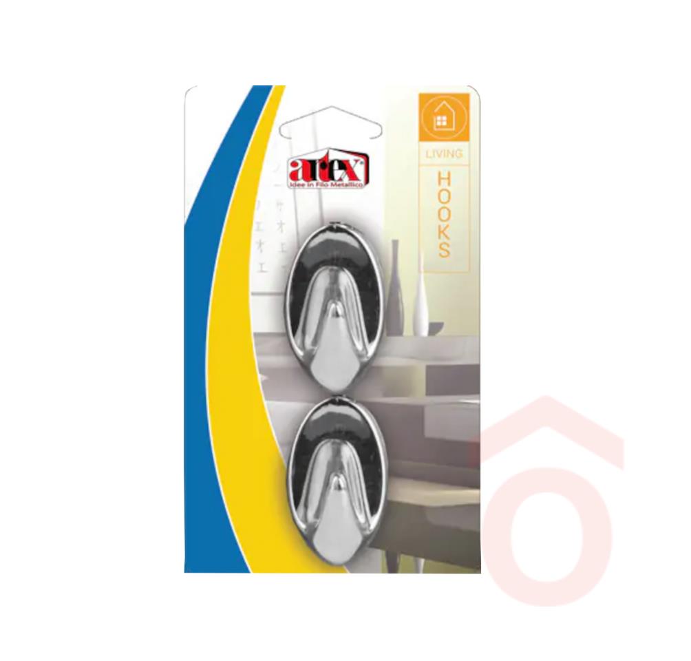 Praktikus, krómozott felületű, ovális öntapadós akasztók mindennapi használatra. A hátoldali erős ragasztó gyors és fúrásmentes rögzítést biztosít sima felületeken – ideális konyhába, fürdőbe, előszobába vagy irodába.