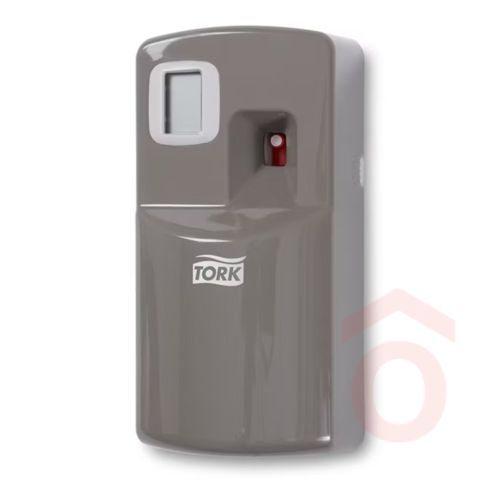 A Tork szürke illatosítóspray-adagoló a Tork Image termékcsalád tagja, amely tökéletesen illeszkedik modern, sötét csempés mosdók környezetébe. Letisztult, elegáns megjelenése mellett praktikus és egyszerűen karbantartható megoldást nyújt. A beépített kifogyásjelző idõben észleli a csere szükségességét, míg az egyszerű utántöltési rendszer és a tartós elem csökkenti a karbantartási igényt. A programozható adagoló folyamatosan frissen tartja a levegõt, kellemes élményt biztosítva a mosdóhasználóknak.