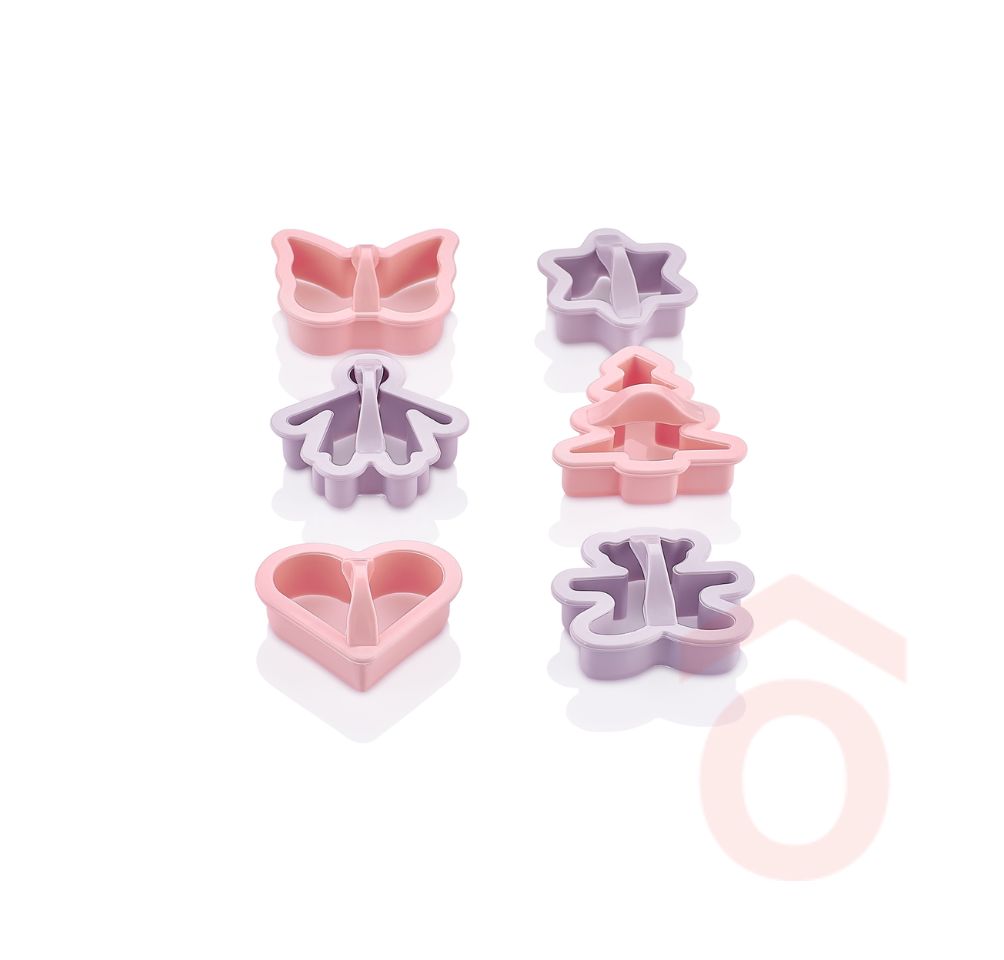 Tedd különlegessé a házi süteményeket ezzel az aranyos, 6 darabos sütikiszúró szettel! A készlet különböző mintákat tartalmaz (például pillangó, szív, virág, fa), így ideális választás ünnepekre, gyerekprogramokra vagy hétköznapi sütögetésekhez. A műanyag kialakítás biztonságos és könnyen kezelhető, akár gyerekek számára is. A fogantyús kialakítás segíti a kényelmes használatot, a formák pedig precízen vágnak.