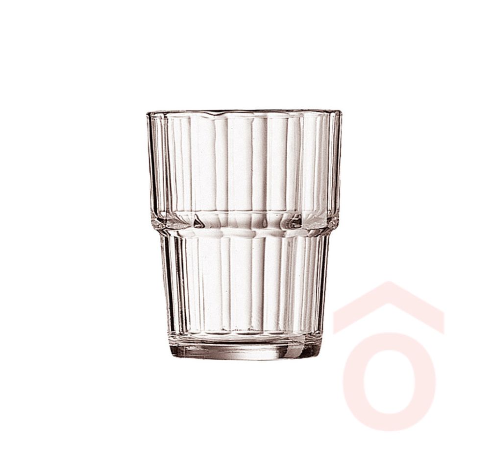 Temperált üveg vizes pohár, egymásba rakható. Kívül bordás, belül sima felületű. Rendkívül ellenálló hőmérsékletnek és fizikai behatásoknak. Extra ütésálló, szilánkmentesen törik. Mosogatógépben mosható.