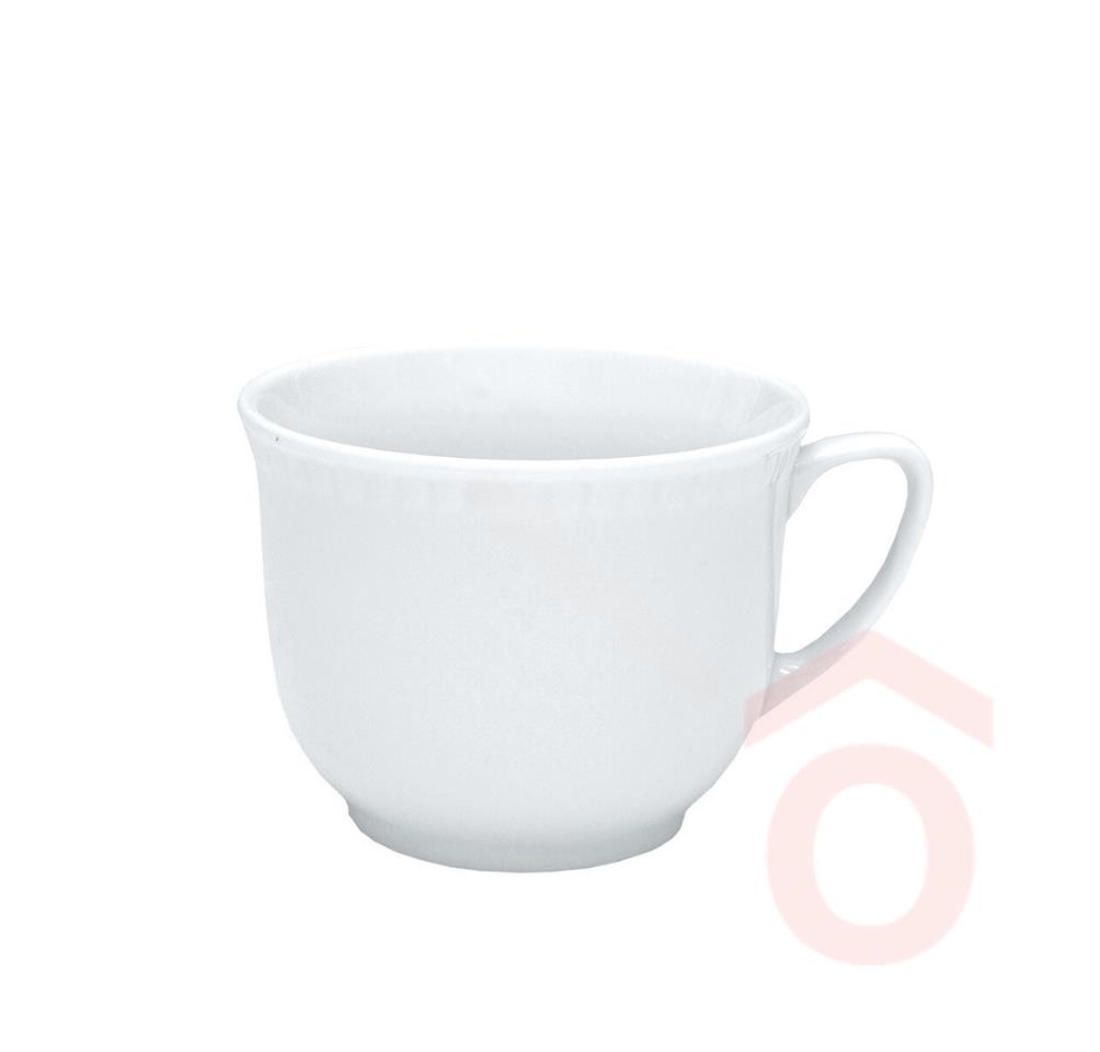 Bécsi bögre kecses vonalú bögre, a felső szélén a porcelán anyagában négyzetes díszítés fut körbe, ami kiemelkedéseket és bemélyedéseket eredményez.