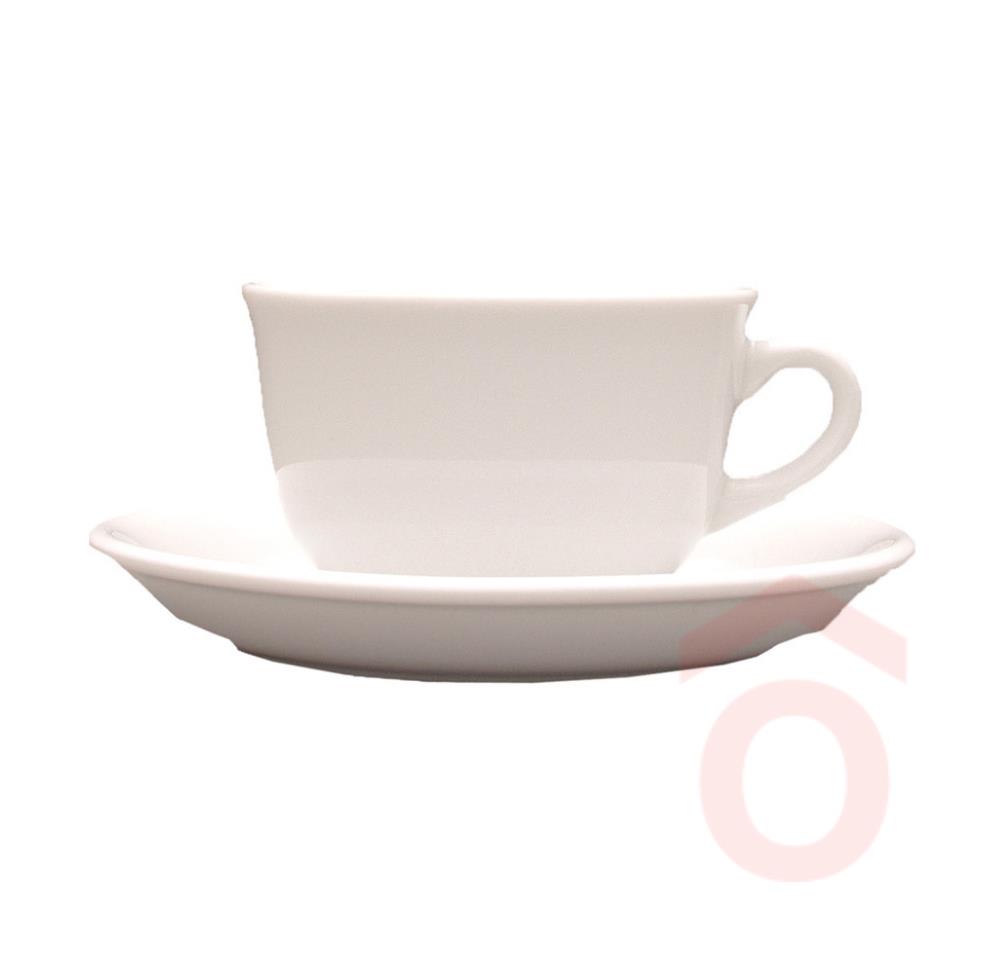 Capuccino csésze 170 ml, a hozzá tartozó alj átmérője 145 mm. Enyhén felfelé bővülő forma, dekorálásra alkalmas. Masszív, megerősített széllel készült, ami biztosítja a tartós használatát. A család további rendelhető terméke mokkacsésze aljjal.