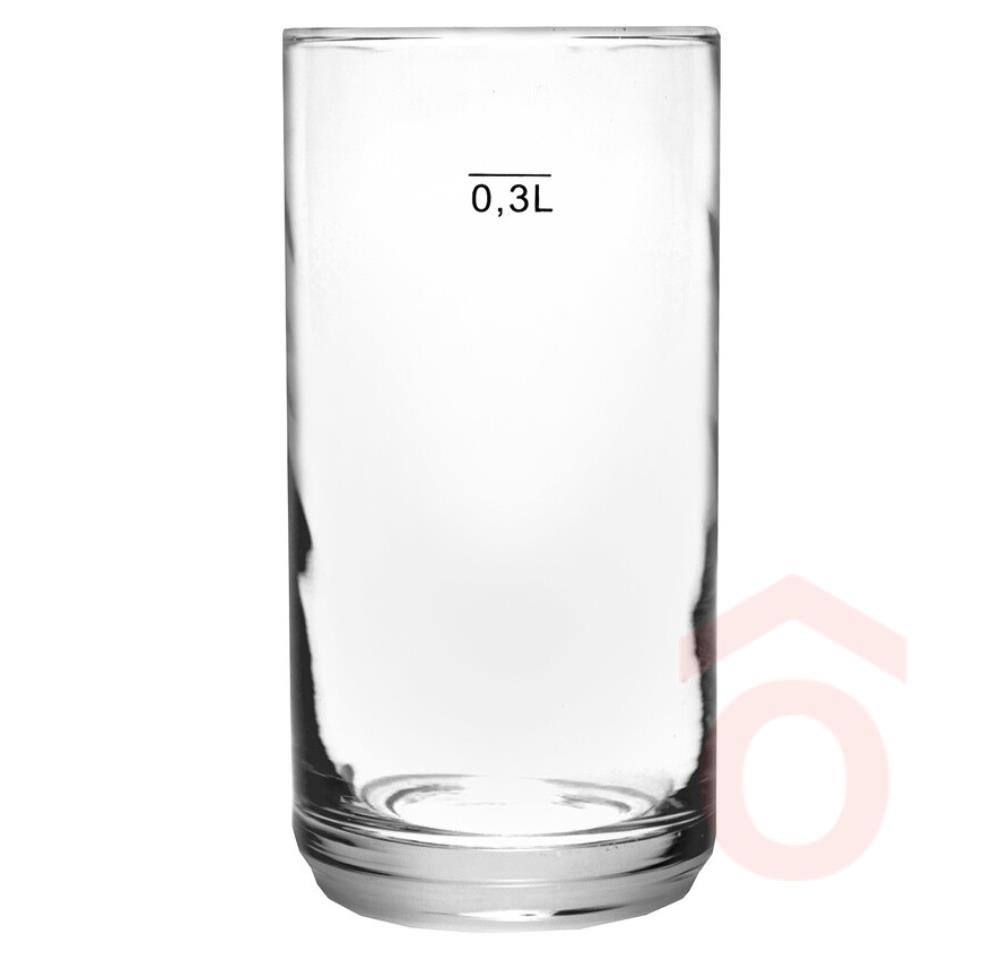 Gasztro pohár, vendéglátásban használatos párhuzamos falú üvegpohár. Űrtartalma 300 ml-nél fekete színnel jelölve.