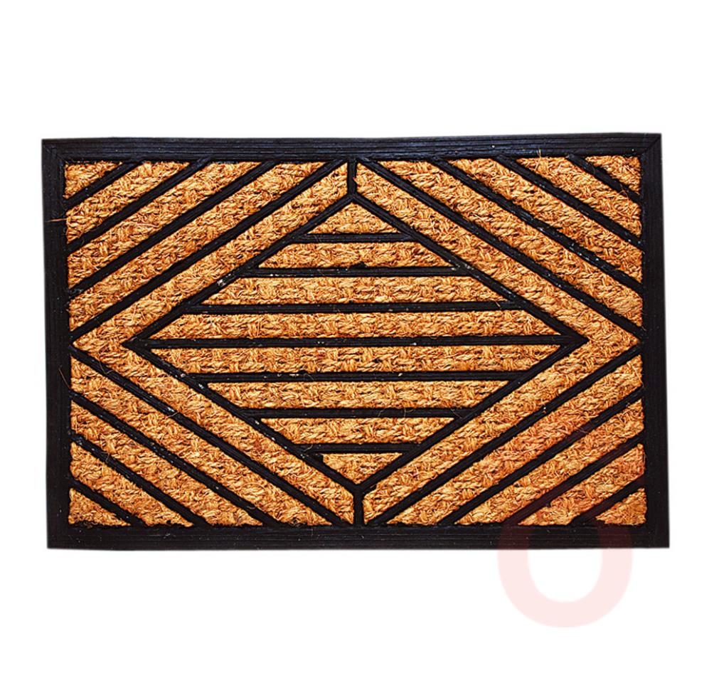 Négyzetes alakú lábtörlő kókuszrost és gumi anyagból. Terméktípus: szőnyeg Szőnyeg típus: lábtörlő Anyaga: kókuszrost, gumi Szín: natúr, fekete Méret: 60 x 40 cm Kiszerelés: 1 db
