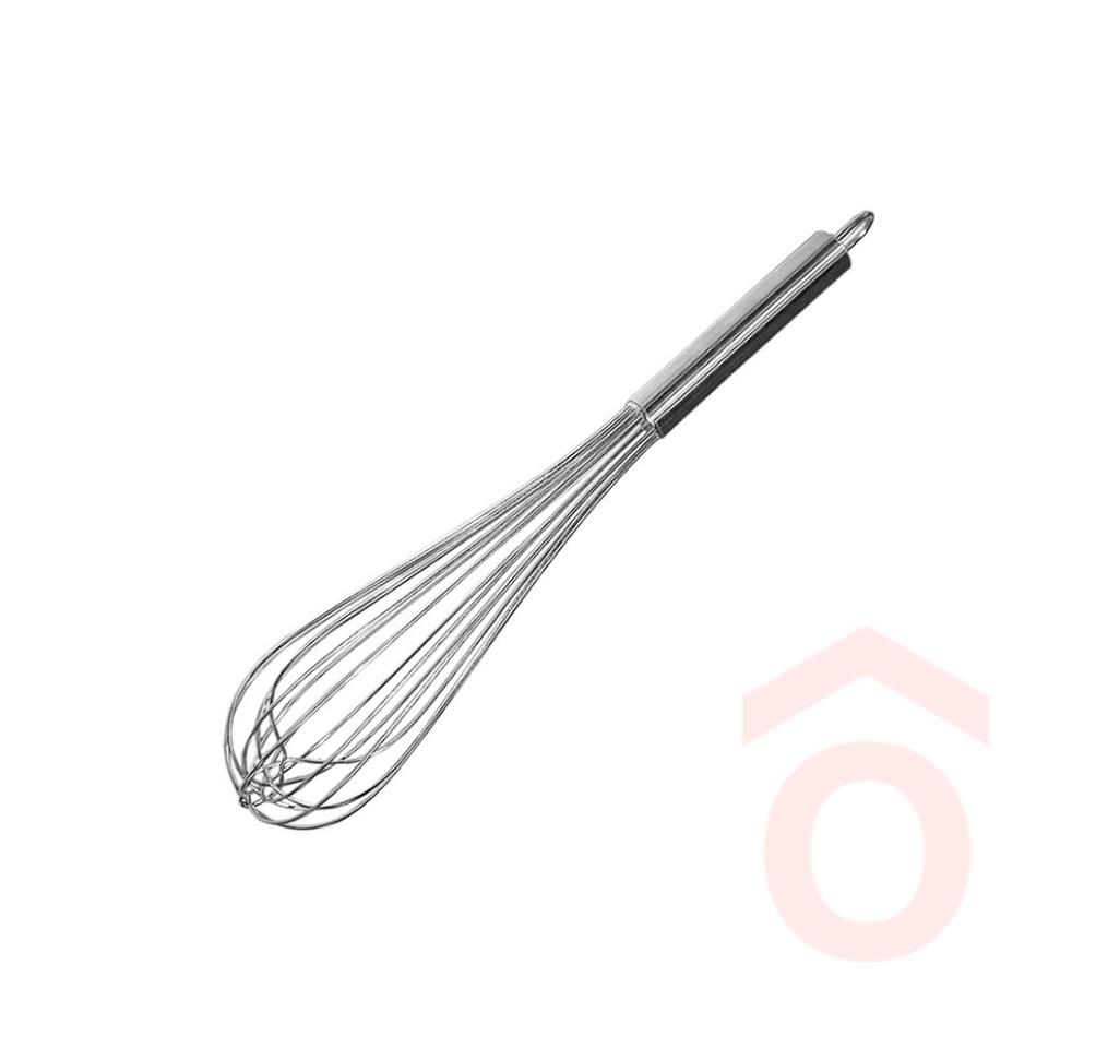 Rozsdamentes acélból készült cukrászati kellék (habverő), krémekhez, habokhoz, 12 szálas. Felakasztható.