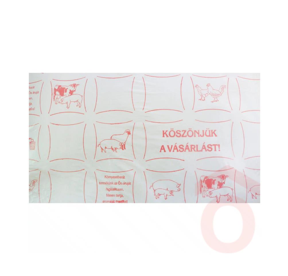 Húsok, felvágottak csomagolására alkalmas fóliázott papírív nyomott mintával.