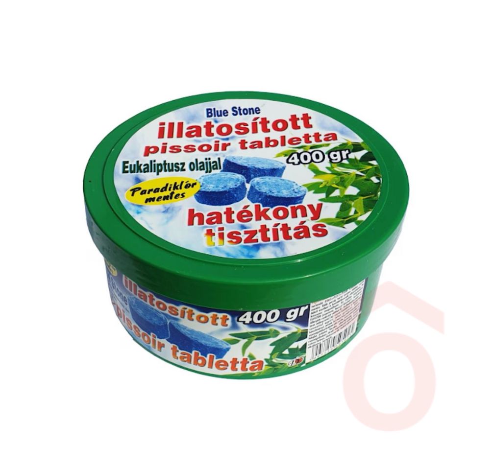 A Blue Stone piszoártabletta hatékonyan semlegesíti a kellemetlen szagokat, miközben tisztán tartja a felületeket. Friss eukaliptusz illata hosszan tartó frissességet biztosít a mellékhelyiségekben.