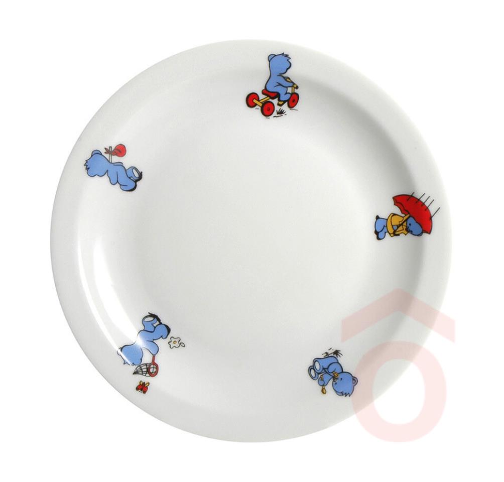 Gyermek porcelán tányér, maci dekorral. Vendéglátásban és a háztartásban egyaránt használható és népszerű család. Mosogatógépben mosható.