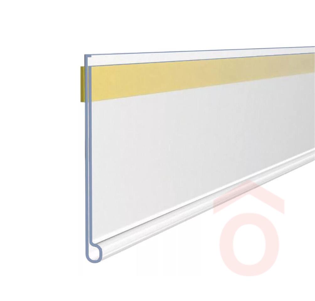 Ársín polcszélre, öntapadó, front víztiszta, hátlap fehér, felül porvédő peremmel, max. 29,5 mm magas címkéhez. Terméktípus: ársín Kiszerelés: 1 db Szín: víztiszta Méret: 32 x 100 cm Anyaga: műanyag