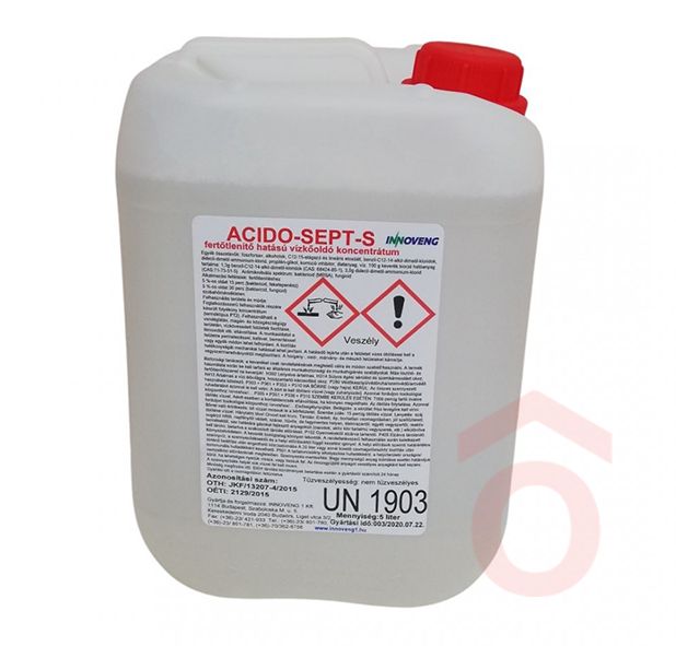 Az Inno Acido Sept egy erőteljes hatású, savas vízkőoldó és fertőtlenítőszer, amely ideális zsírral szennyezett, vízkövesedett felületek tisztítására. Hatékonyan távolítja el a tejkövet, fémoxidokat és más makacs szennyeződéseket, miközben baktericid (MRSA) és yeasticid hatással rendelkezik.