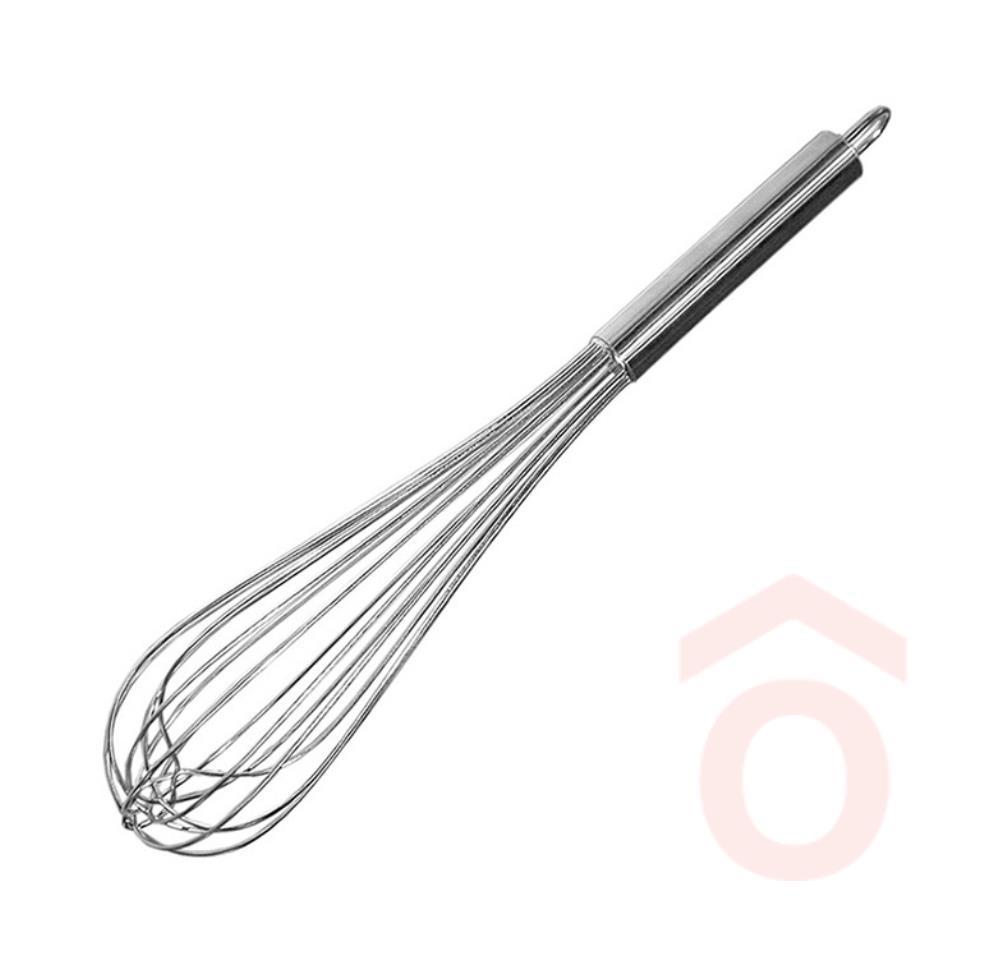 Rozsdamentes acélból készült cukrászati kellék (habverő), krémekhez, habokhoz, 12 szálas. Felakasztható. Terméktípus: habverő (12 szálas) Kiszerelés: 1 db Méret: 50 cm Anyaga: rozsdamentes acél