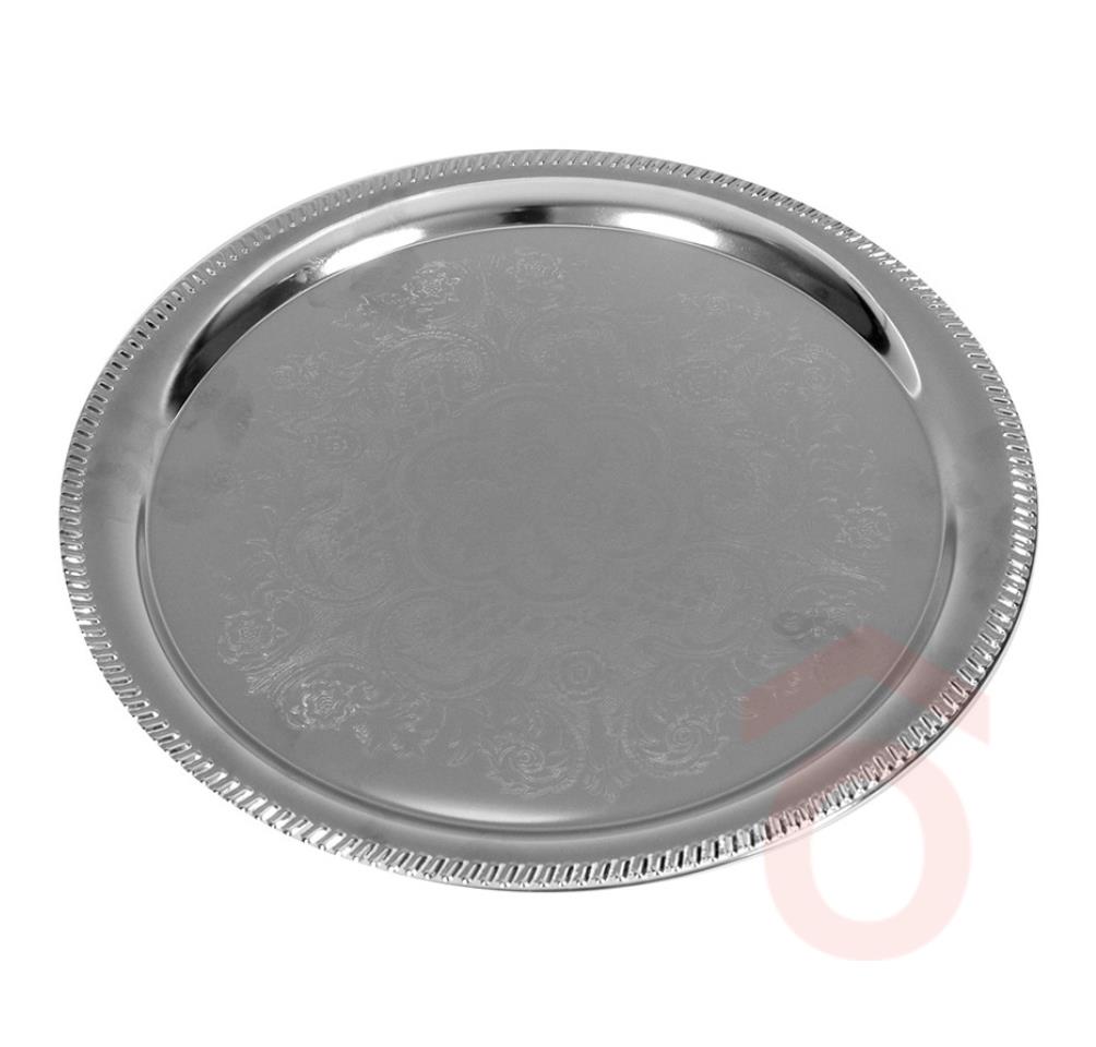 Krómozott kerek tálca 35 cm. Karcmentes, folyékony mosogatószerrel tisztítható.