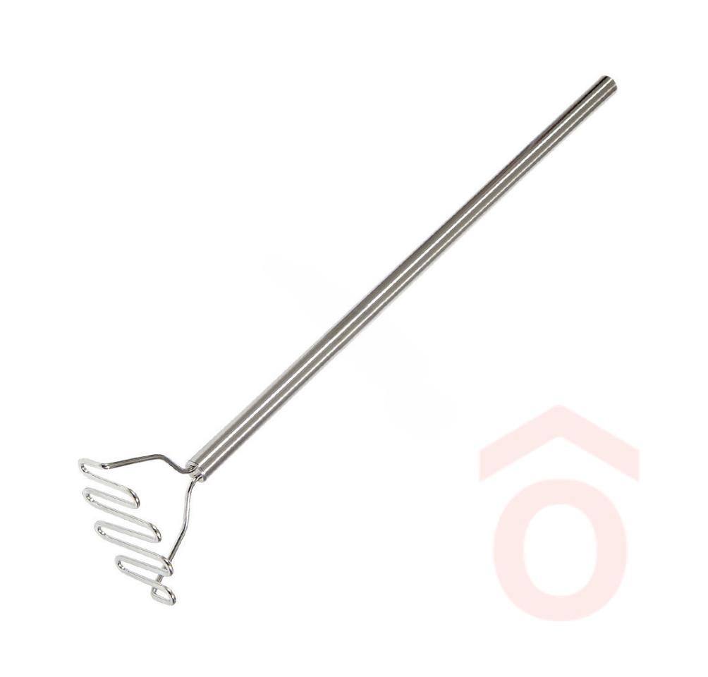 Rozsdamentes acélból készült burgonyatörő, főtt krumpli töréséhez és pürésítéséhez használt konyhai eszköz. Terméktípus:m burgonyatörő Kiszerelés: 1 db Anyaga: rozsdamentes acél Méret: 80 x 15,5 cm