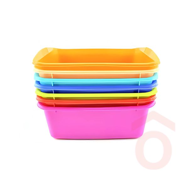 Masszív, 8 literes űrtartalmú téglalap formájú műanyag tál, stabil peremmel és lekerekített sarkokkal. Több élénk színben elérhető, mosogatógépben is mosható – ideális nagy mennyiségű étel, saláta, tészta vagy gyümölcs előkészítéséhez és tálalásához.